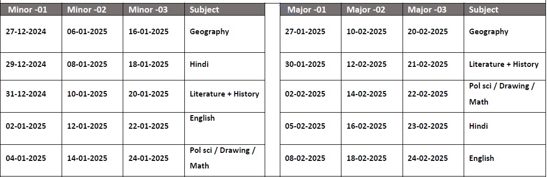 Pre Board 2024-25 Exam Time Table