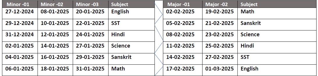 Pre Board 2024-25 Exam Time Table